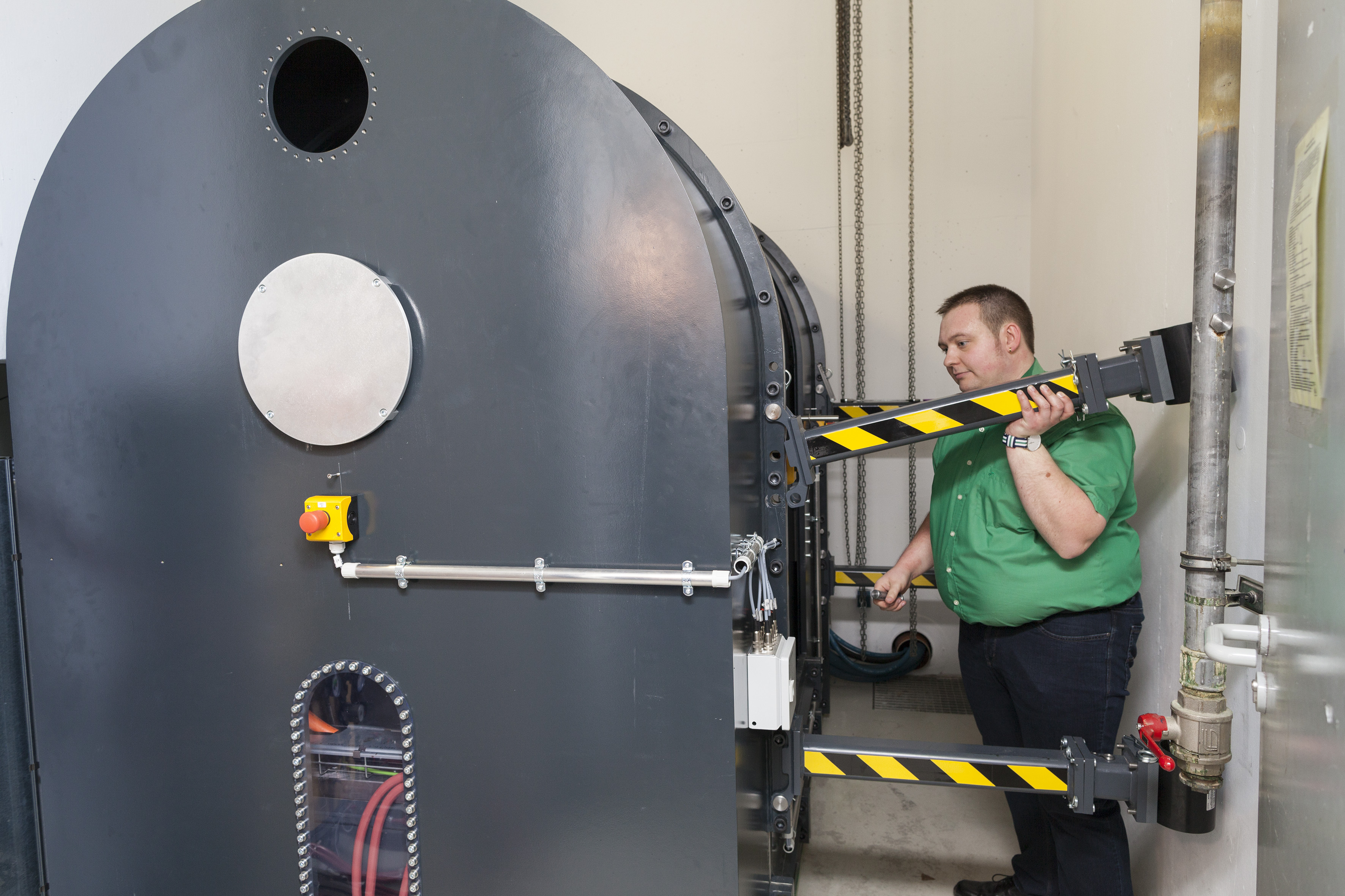 Der FAU-Wissenschaftler hat den 16 Tonnen schweren Prüfstand, der in einem eigenen Prüfbunker auf 22 Quadratmetern untergebracht ist, bis auf die letzte Schraube entworfen und mit den Mitarbeitern der Zentralen Mechanik- und Elektronikwerkstatt der Technischen Fakultät der FAU in die Realität umgesetzt.