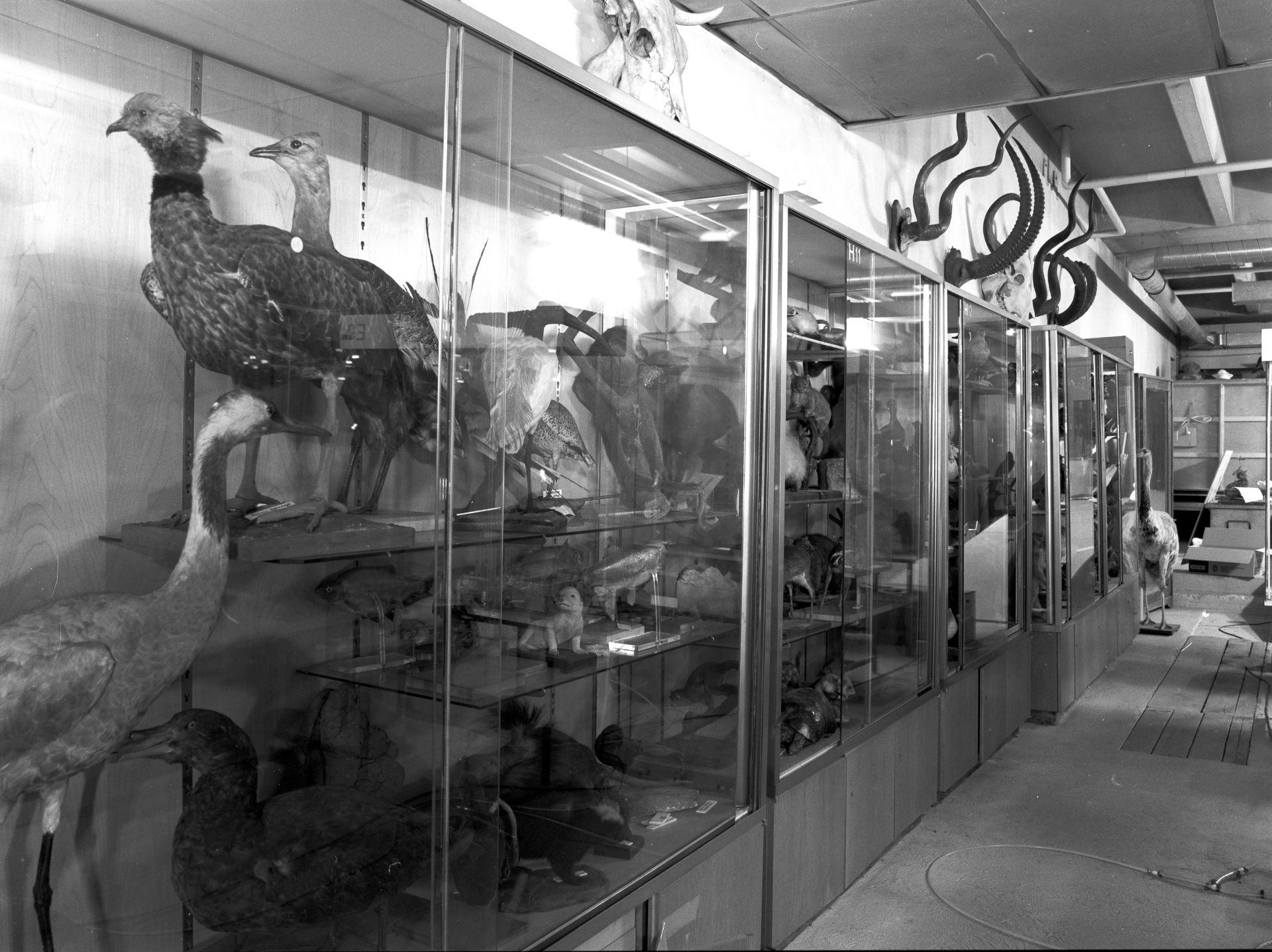 Doch mit dem Umzug des Instituts in den Stadtsüden musste die Sammlung auf verschiedene Standorte aufgeteilt werden. Unter anderem landeten Vitrinen mit ausgestopften Vögeln und Kleintieren, Fossilien, Skelettmodellen und sogar ein präparierter Orang-Utan in der Kegelbahn.