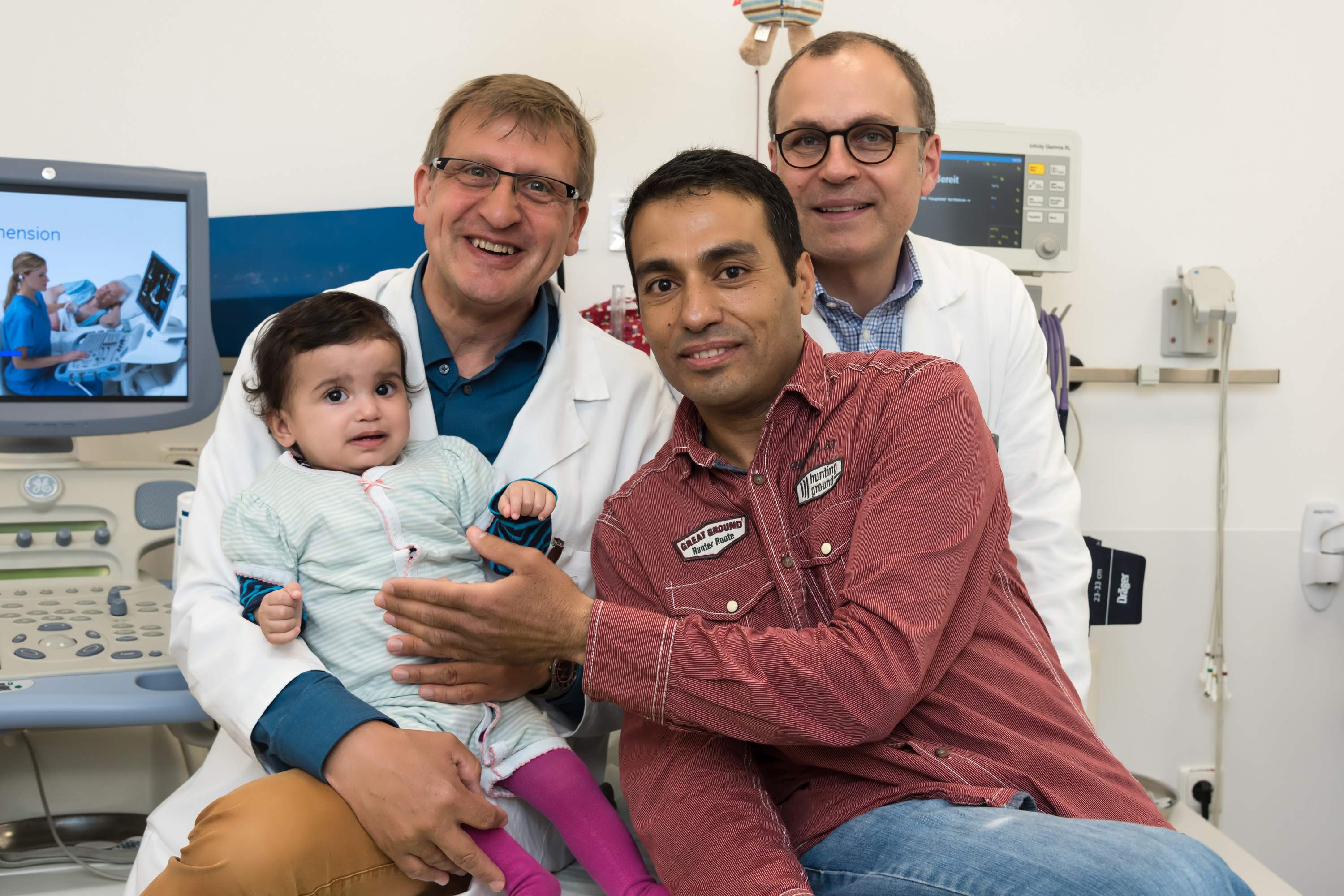 Die letzte der drei lebensrettenden Operationen fand ausgerechnet an Raghads erstem Geburtstag statt: So feierte das kleine Mädchen aus Syrien nicht nur den Beginn seines zweiten Lebensjahres, sondern auch den Schritt in ein normales Leben. Denn als Raghad im April 2015 das Licht der Welt erblickte, diagnostizierten die Ärzte einen schweren Herzfehler. Eine lebensrettende OP inmitten eines im Bürgerkrieg befindlichen Landes? Schon damals undenkbar. Einer engagierten Bekannten der Familie gelang es, das Kind und seinen Vater nach Deutschland zu holen; vor Ort leistete der Verein „Erlangen hilft“ monatelang wertvolle Unterstützung. Die beiden Notfalleingriffe gleich im August 2015, die weitere Behandlung und die folgenden Operationen übernahmen die Ärzte und die Pflegefachkräfte der Kinderherzchirurgischen sowie der Kinderkardiologischen Abteilung des Universitätsklinikums Erlangen im Rahmen der Aktion „Kinderherz-OP“ – für die die Bevölkerung Erlangens und der Umgebung großzügig spendete!