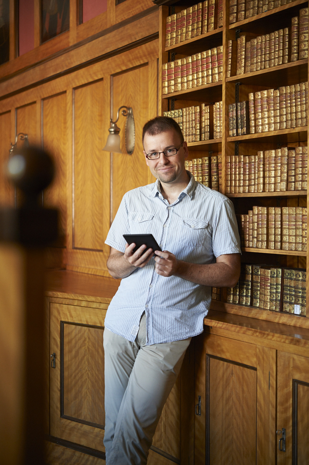 Sie bedeuten nicht das Ende für das gedruckte Buch, sondern etablieren eine weitere Form des Lesens: Dr. Axel Kuhn steht elektronischen Lesegeräten gelassen gegenüber. (Bild: FAU/David Hartfiel)