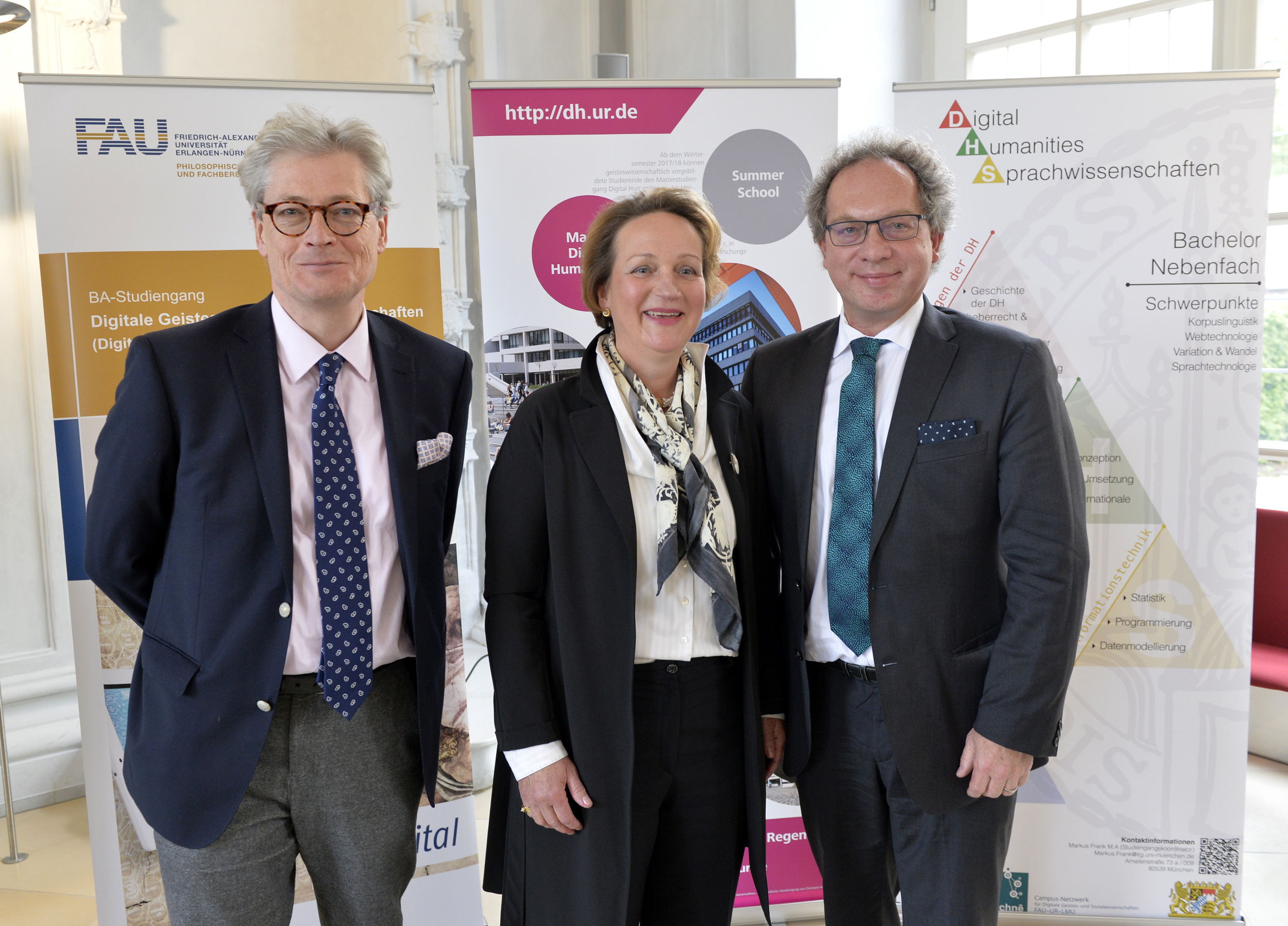 Ministerialdirigent Dr. Michael Mihatsch vom Bayerischen Staatsministerium für Bildung und Kultus, Wissenschaft und Kunst betonte: „Die Kooperation der Universitäten Erlangen-Nürnberg, München und Regensburg eröffnet den Studierenden und Lehrenden gute Möglichkeiten, sich praxis- und projektorientiert über die digitalen Technologien in Gesellschaft und Wissenschaft auszutauschen – von gemeinsamen Veranstaltungen hin zu virtuellen Lehrangeboten. Das bayerische Wissenschaftsministerium unterstützt die Hochschulen im Freistaat dabei, moderne Informationstechnologien und digitale Ressourcen, auch gerade in den Geistes- und den Sozialwissenschaften, für die Arbeit in Wissenschaft und Lehre zu nutzen.“
