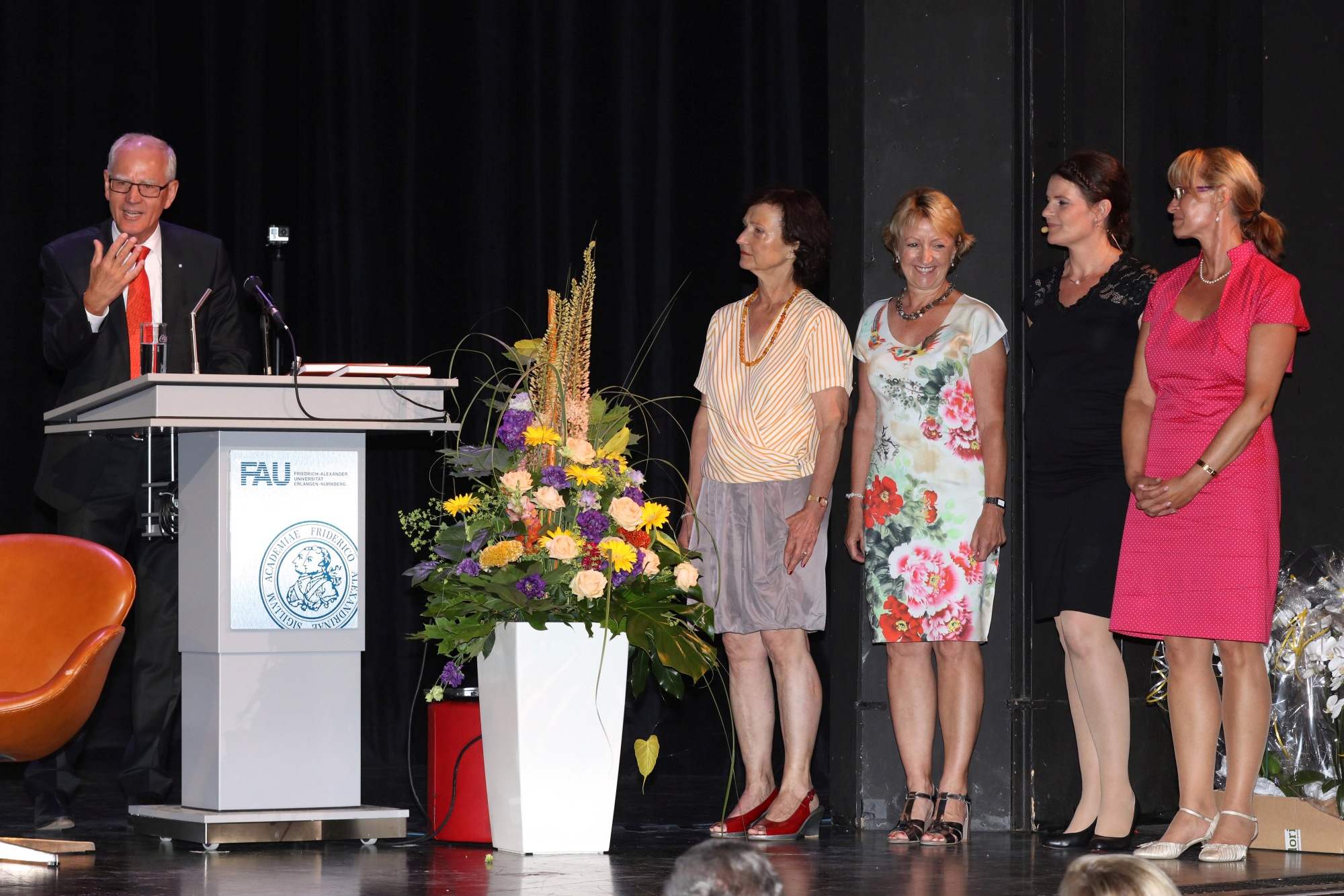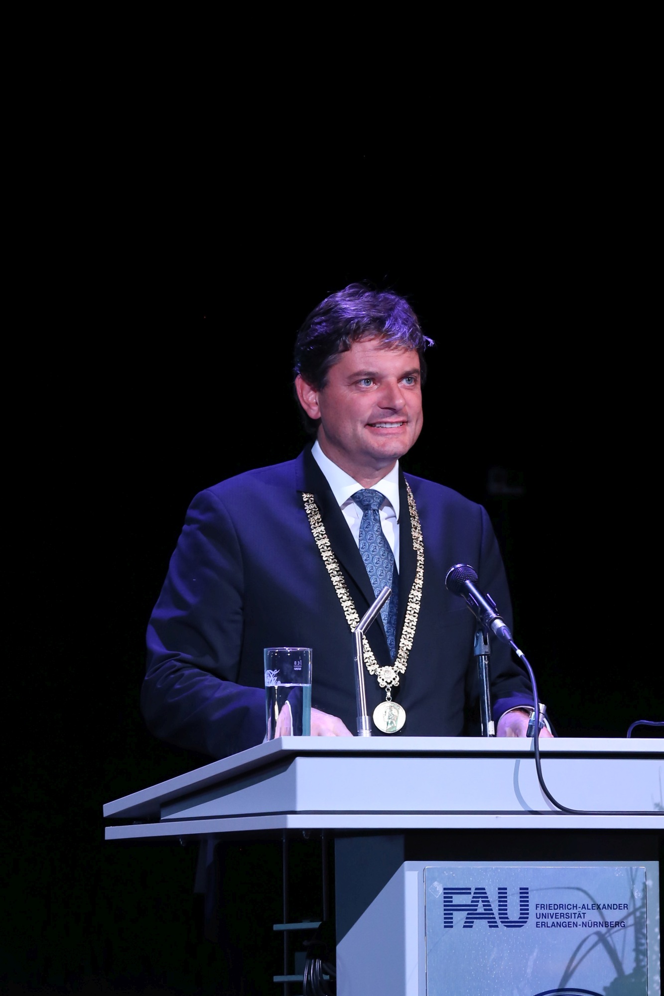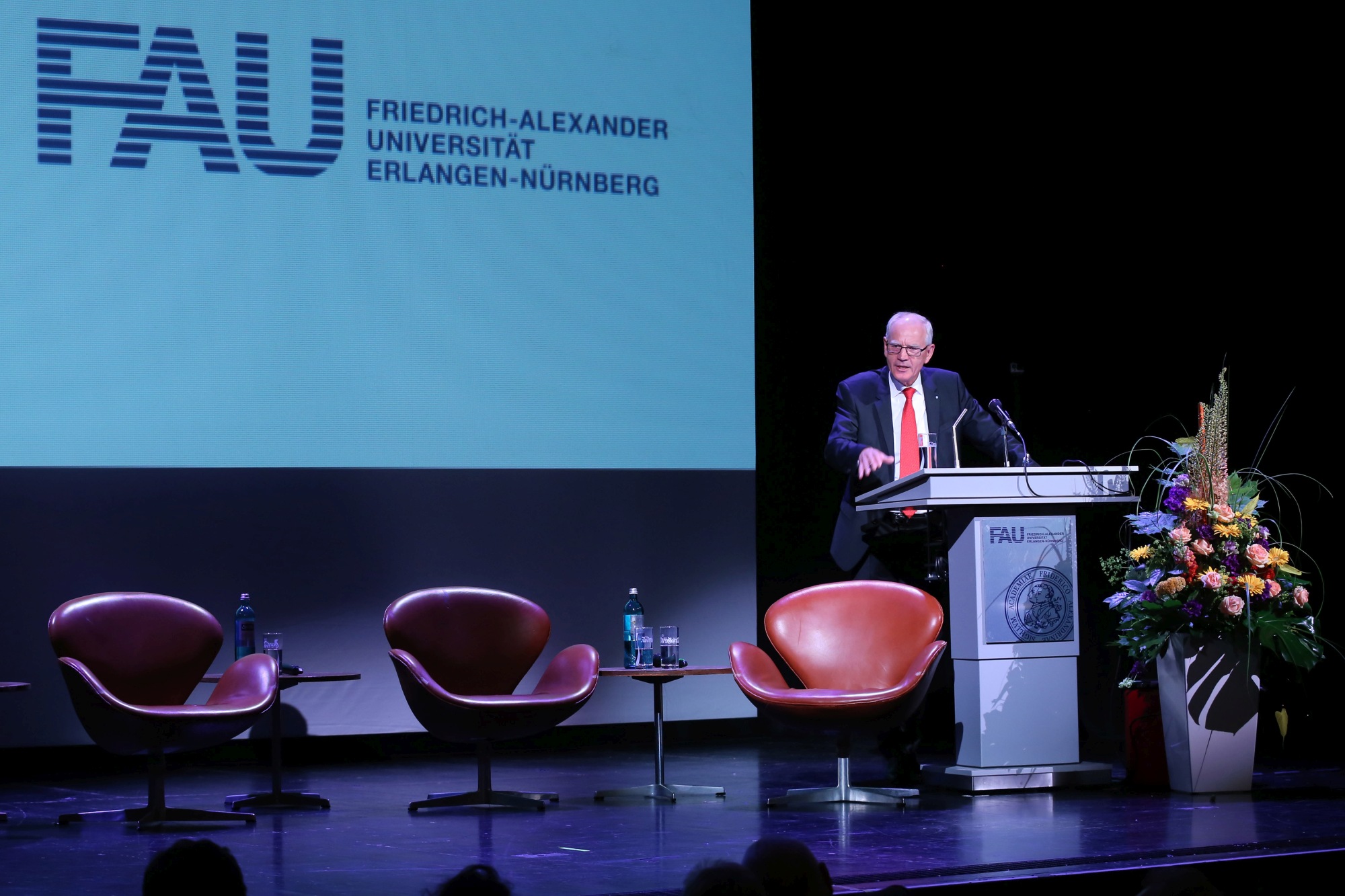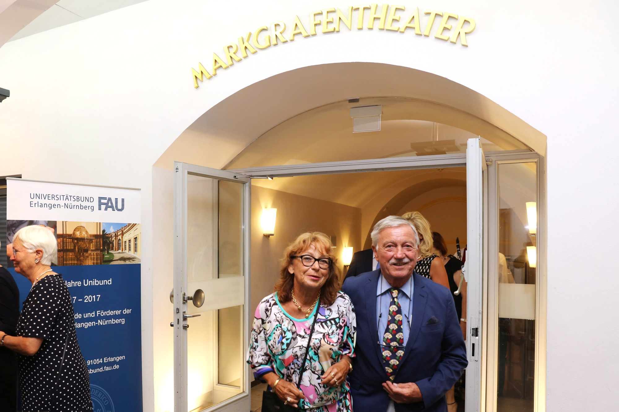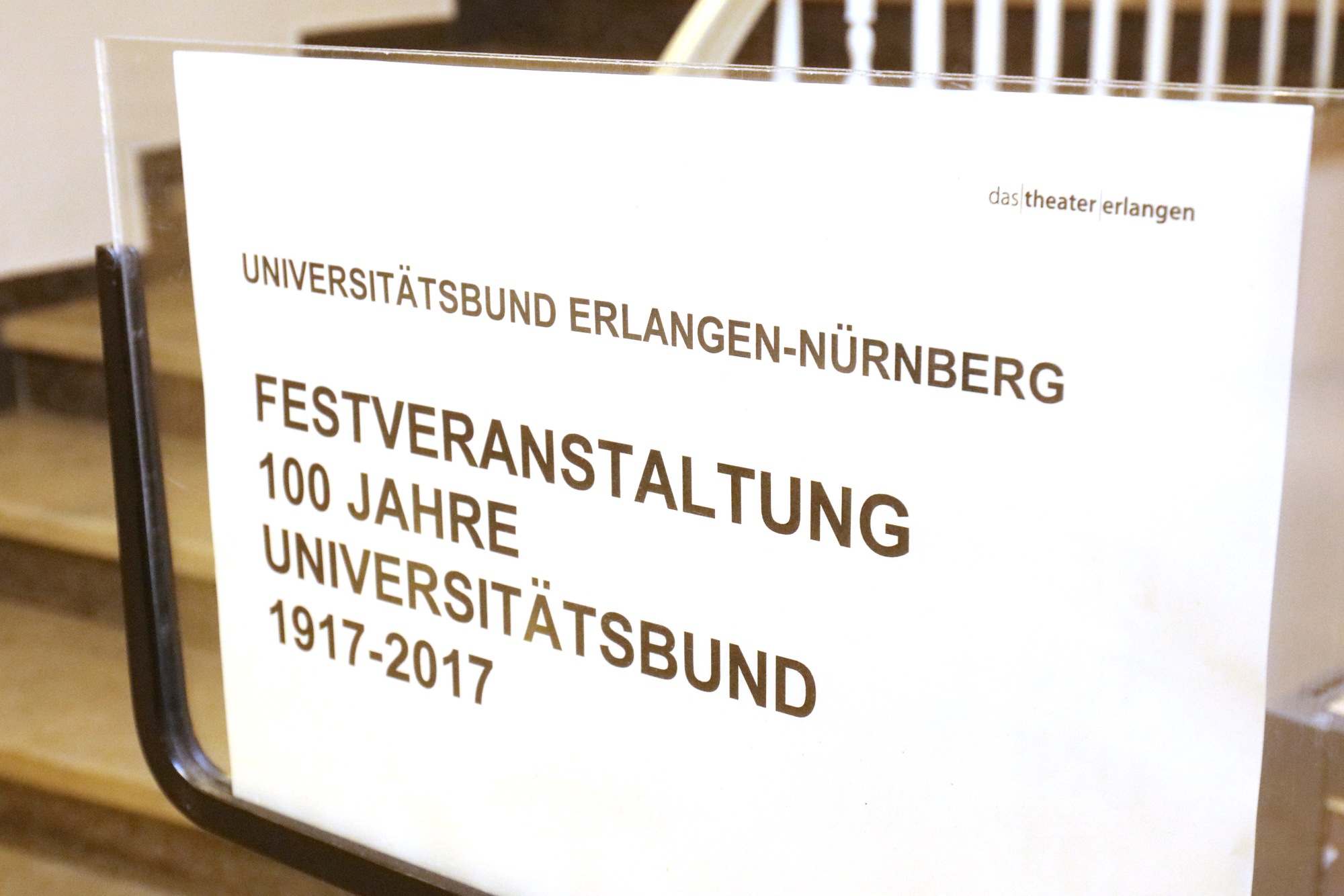 Der Universitätsbund der FAU hat am 21. Juli 2017 sein hundertjähriges Bestehen im Erlanger Markgrafentheater gefeiert. Die von Klängen der Kapelle Rohrfrei umrahmte und von Miriam Scholz moderierte Festveranstaltung umfasste Grußworte des Vorsitzenden, Dr. Siegfried Balleis, sowie des Bayerischen Staatsministers des Inneren, für Bau und Verkehr, Joachim Herrmann, MdL, gefolgt von einer lockeren Talkrunde mit Prof. Dr. Joachim Hornegger, Präsident der FAU; dem stellvertretenden Vorsitzenden, Dr. Florian Janik, Oberbürgermeister der Stadt Erlangen; Dr. Ralf P. Thomas, CFO Siemens AG; dem Schatzmeister Dr. Ralf P. Thomas sowie Stefan Müller, MdB, parlamentarischer Staatssekretär im BMBF. Den Festvortrag mit dem Titel „Die Universität — ein exzellentes Unternehmen?“ hielt Prof. Dr. Dieter Imboden, Emeritus der ETH Zürich. Nach einer Ehrung langjähriger Mitglieder ging es zum Stehempfang vor der Orangerie.