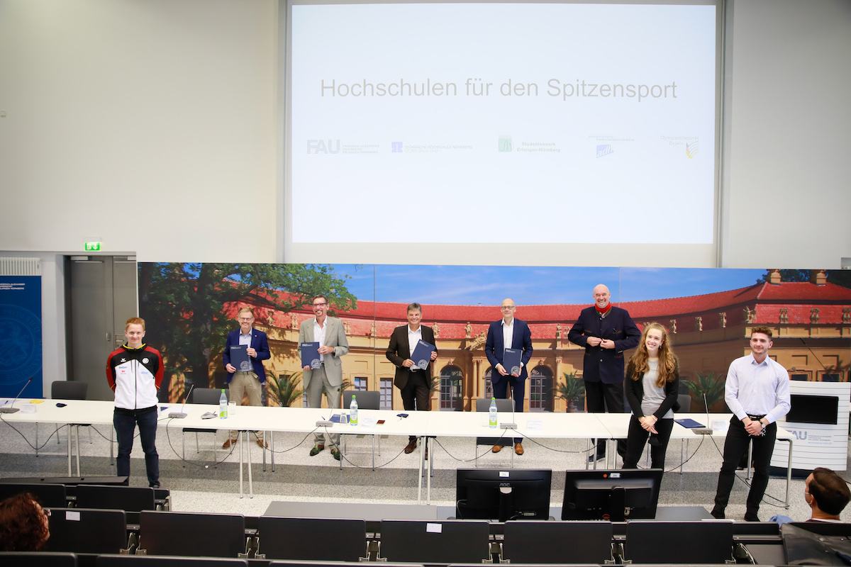Sportliche Höchstleistungen verlangen von Athletinnen und Athleten intensiven Einsatz. Die Vereinbarkeit von sportlichen Zielen und einem erfolgreichen Studium ist daher eine echte Herausforderung. Die Friedrich-Alexander-Universität Erlangen-Nürnberg (FAU) und die Technische Hochschule Nürnberg Georg Simon Ohm (TH Nürnberg) helfen Spitzensportlerinnen und -sportlern dabei: Am 1. September 2020 hat die FAU ihre Kooperation mit dem Allgemeinen Deutschen Hochschulsportverband (adh), dem Studentenwerk Erlangen-Nürnberg und dem Olympiastützpunkt Bayern (OSP) als „Partnerhochschule des Spitzensports“ erneuert; die TH Nürnberg hat eine Vereinbarung neu unterzeichnet.