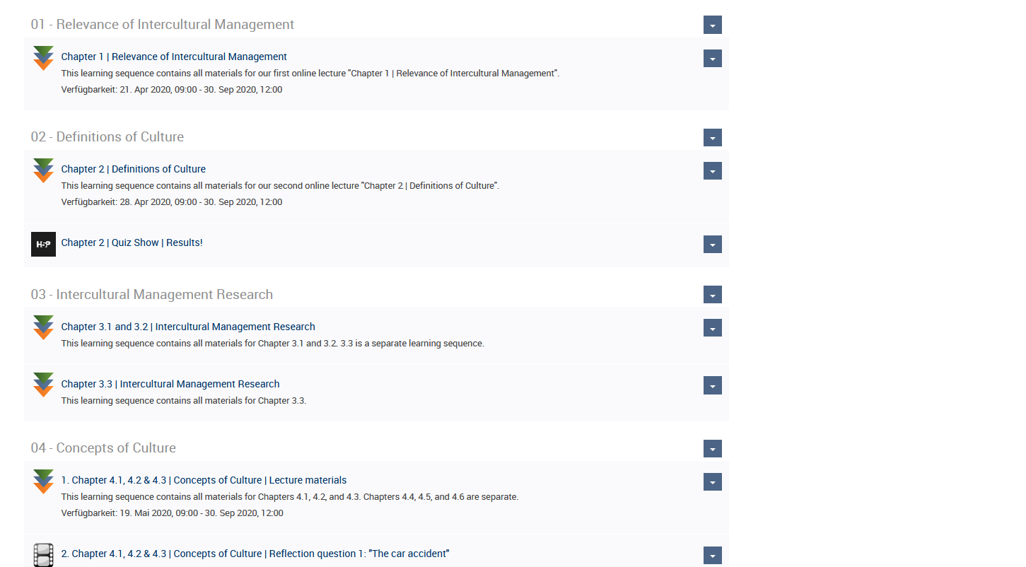 Am Lehrstuhl für Internationales Management sind 2020 noch sechs weitere Vorlesungen mit ähnlichem Charakter entstanden. Insgesamt wurden so hunderte Stunden Audio- und Videomaterial, über 30 Videos mit Interviews von Praktikern und über 100 Selbstlerntests produziert.