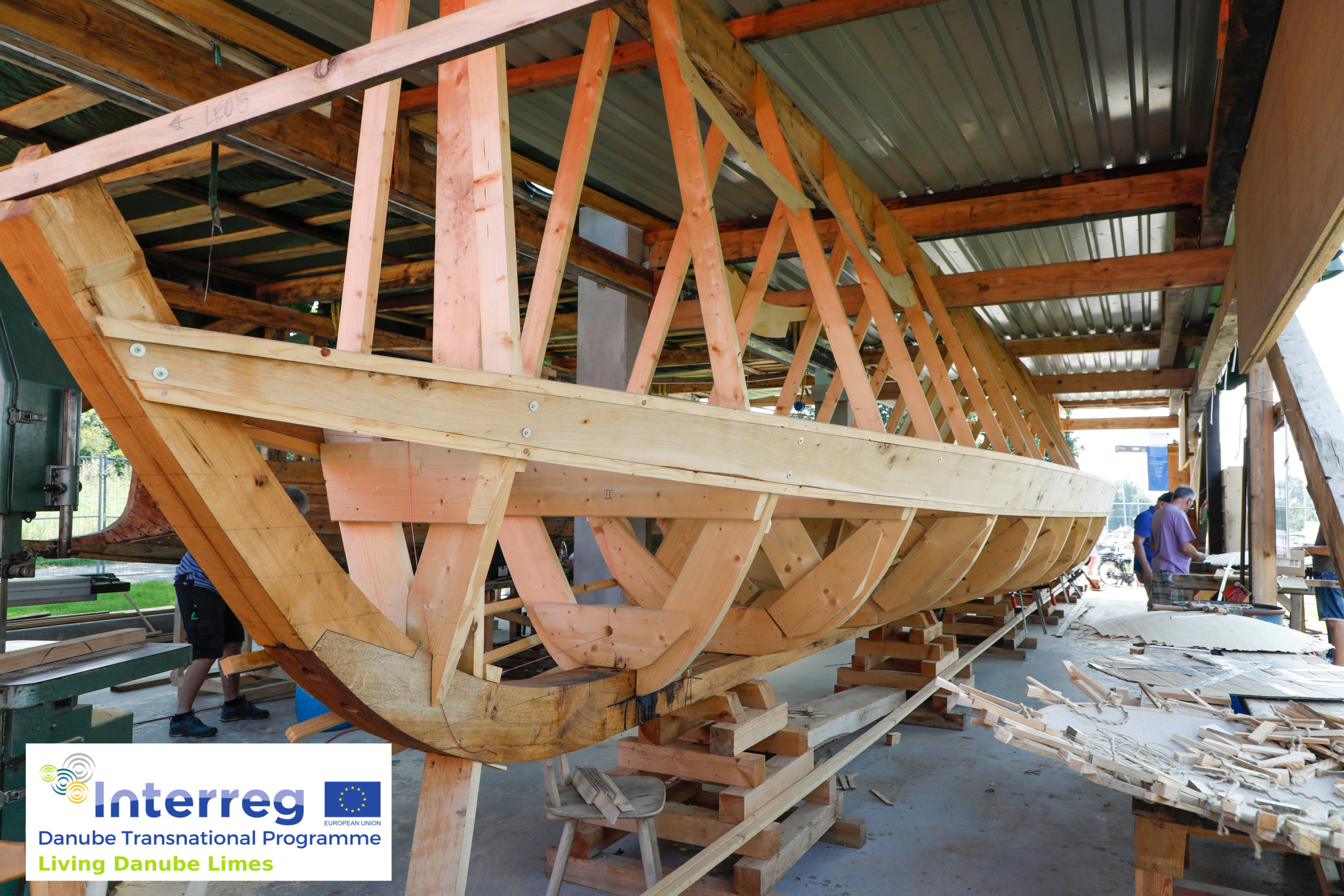 Neben ihr steht die Danuvina Alacris (D.V.C.), das neue Projekt von Boris Dreyer und seinem Team. Die Danuvina ist die Rekonstruktion eines Bootes aus dem vierten Jahrhundert und entsteht im Rahmen des EU Interreg DTP Projekt „Living Danube Limes“. Das Projekt erforscht das Leben der alten Römer am Donau-Limes. Wie schon damals bei der F.A.N. arbeiten Freiwillige unter der Woche gemeinsam mit Studierenden und professionellen Bootsbauern an der DUC, diesmal sogar mit authentischem Werkzeug und Material. „Wir haben durch Überlieferungen das Baurezept, kennen die Materialien aus Analysen von Fundstücken und den Rest probieren wir aus“, erklärt Boris Dreyer.