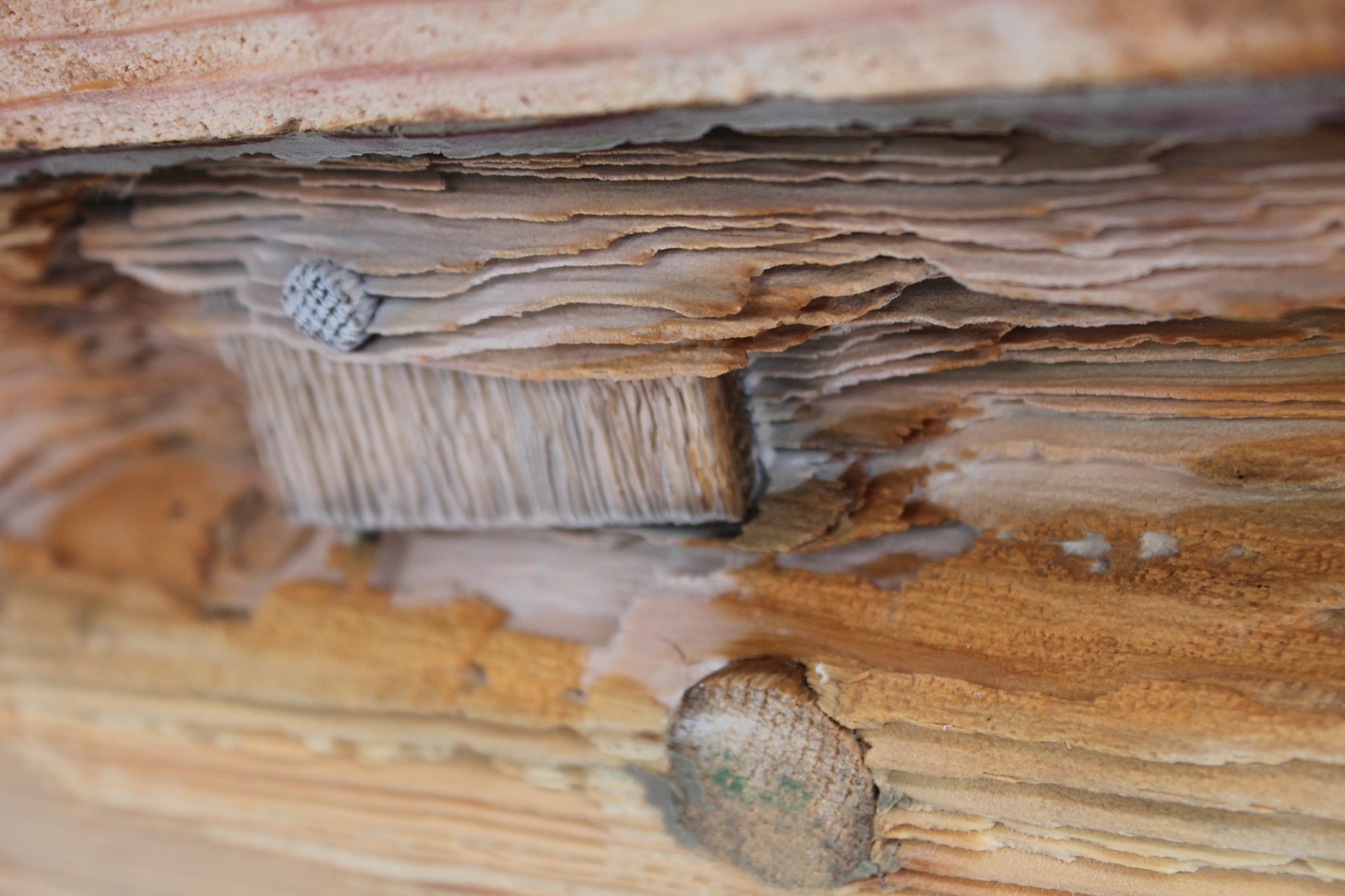 „Wir haben den Pilz erst bemerkt, als der Fruchtkörper schon an der Außenfläche gewachsen ist“, berichtet Prof. Dr. Boris Dreyer. Der Fruchtkörper des Zaunblättlings ist bräunlich und sieht aus wie der umgedrehte Hut eines Pilzes, der sich langsam wie eine Terrasse aus dem Holz schiebt. Bei diesem Anzeichen sei jedoch schon jede Rettung zu spät gewesen. Sieht man den Fruchtkörper an der Außenseite, hat sich das Pilzgeflecht schon im ganzen Holz verteilt. Der Zaunblättling führt zu Würfelbruch. Ganze Holzspäne lassen sich herausziehen, als wären sie nur locker festgesteckt. Die F.A.N. wurde zum großen Teil aus Kiefer gebaut, lediglich die massiven Teile des Bootes, wie der Kiel und die Holzdübel, mit denen die Planken miteinander verbunden sind, sind aus robusterer Eiche. Diese Teile hat der Zaunblättling noch nicht befallen, das liegt am Selbstschutz der Eiche „Sie produziert Gerbsäure – ein Sekret, das den Pilz abhält“, erklärt Prof. Dreyer.