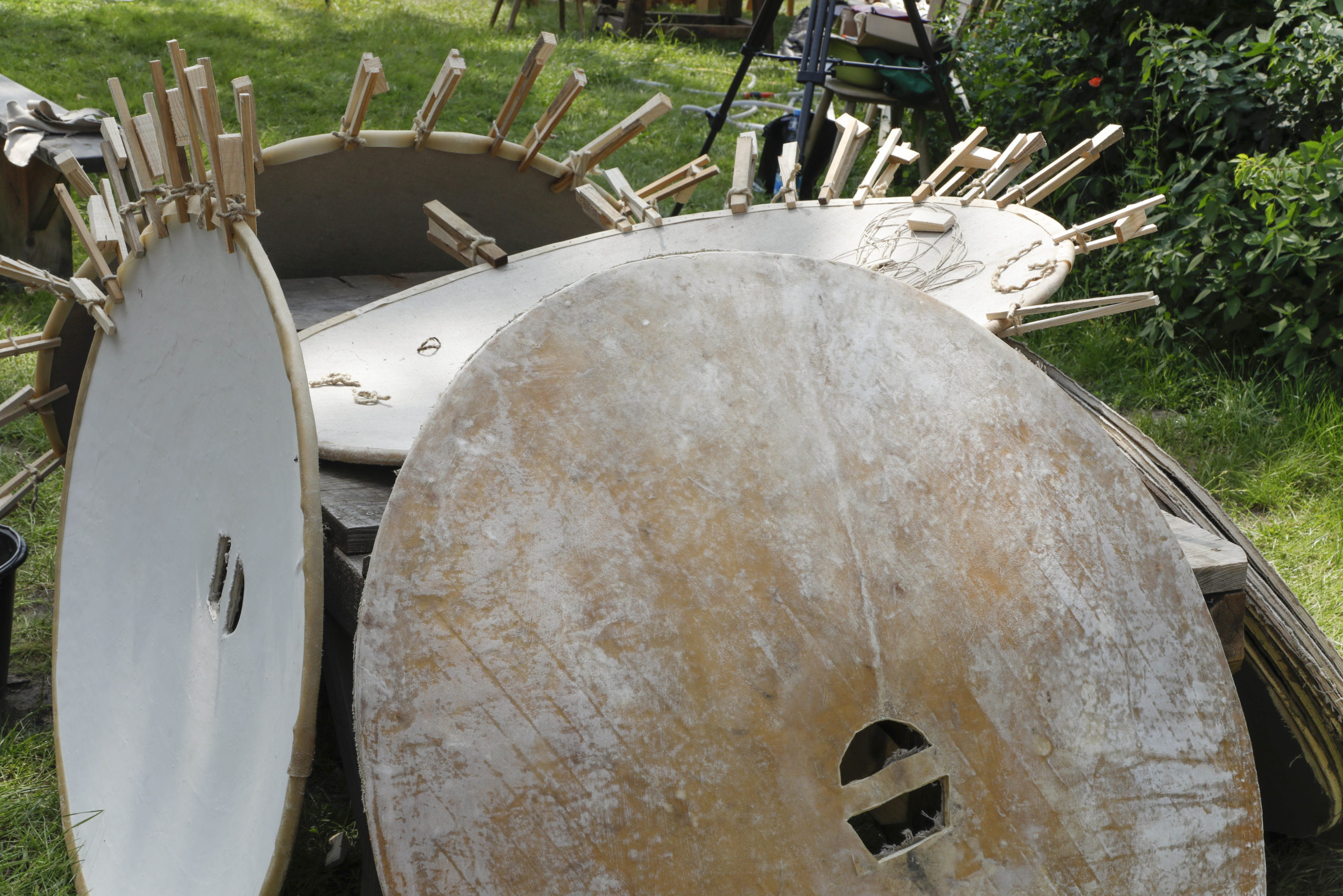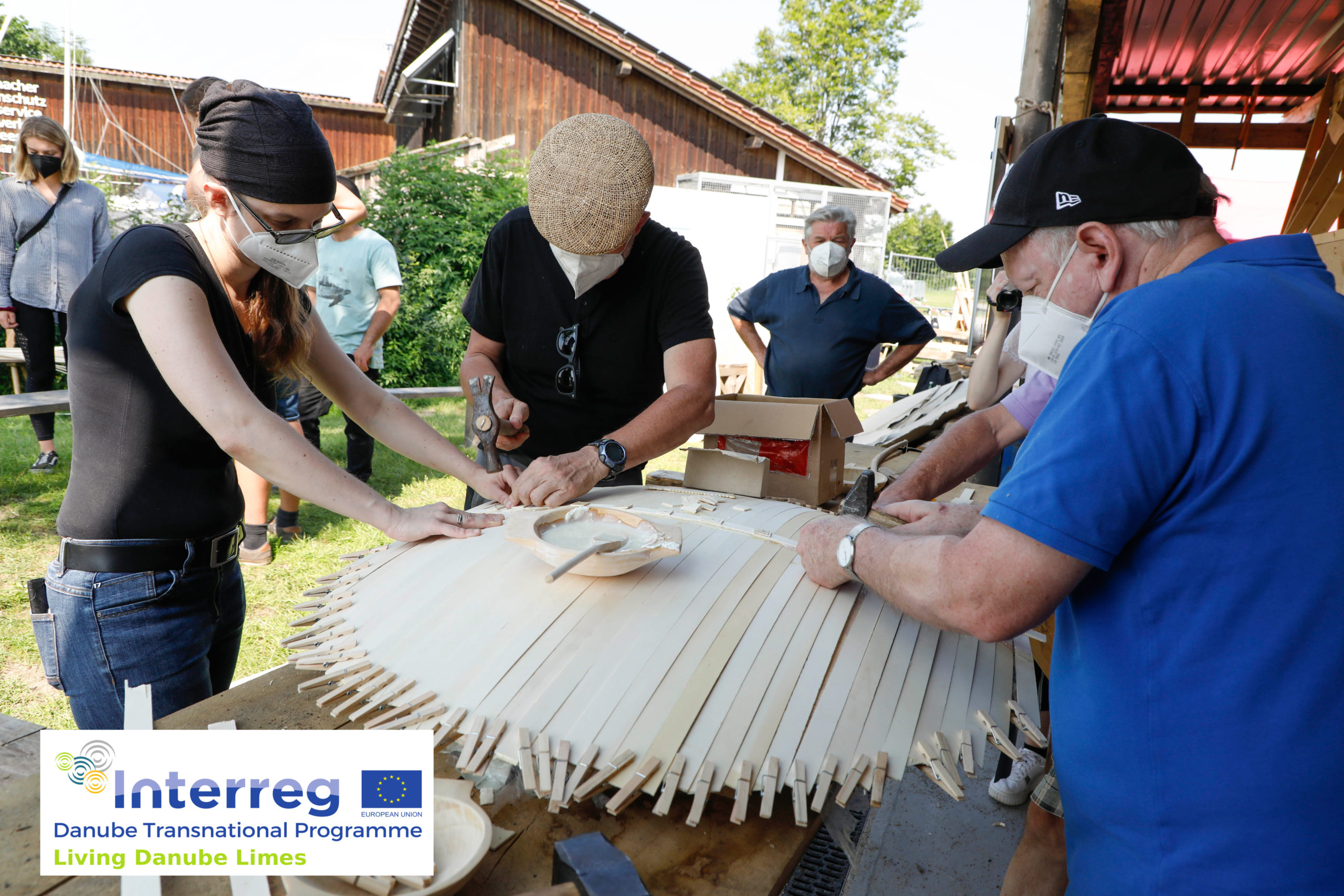Zur Ausrüstung römischer Soldaten gehörten neben der Rüstung, dem Helm und Offensivwaffen wie Schwert und Speer auch große Schilde. Diese nahmen sie auch mit auf die Flussboote, wenn sie auf Flüssen wie der Donau die Grenzen des Reiches bewachten. Die Schilde konnten dann seitlich an der Reling an angebracht werden. Wie diese Schilde gebaut, benutzt und wie sie an der Reling der Patrouillenboote angebracht wurden, versuchen Prof. Dr. Boris Dreyer, Inhaber der Professur für Alte Geschichte, und sein Team aus Mitarbeiterinnen, Mitarbeitern, Studierenden und Freiwilligen beim Bau des zweiten Römerboots, der Danuvina Alacris (D.V.C.), ebenfalls zu rekonstruieren.