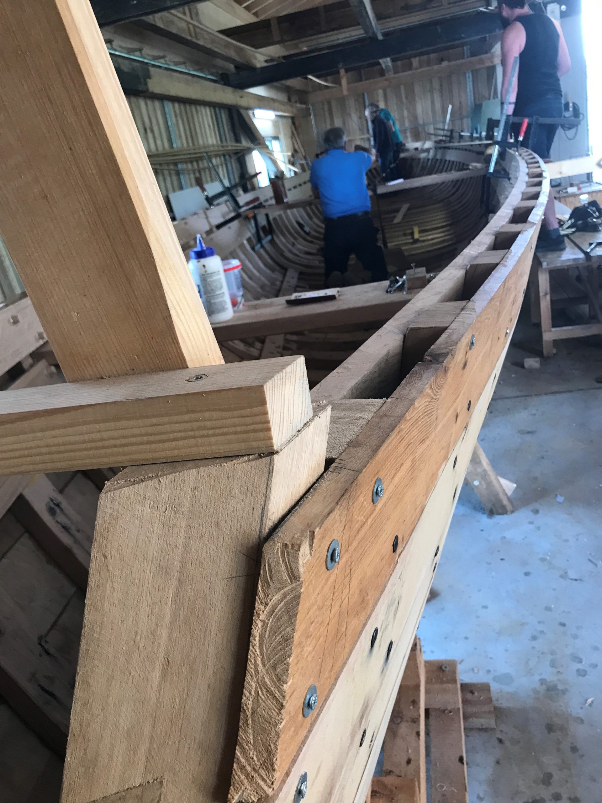 Im April 2022 beendeten Prof. Dr. Boris Dreyer und seinen Helferinnen und Helfer – bis auf die Bemalung – die Arbeiten an der Außenhaut des Rumpfes. Nun muss der Innenausbau folgen, damit die Ruderinnen und Ruderer auch Platz nehmen können. Doch wie sähe die Innenbebauung aus, wenn die Ruderer auch angemessen Platz haben sollen, fragt sich Boris Dreyer. „Obwohl schon einmal ein Boot vom Typ einer spätantiken Lusoria nachgebaut worden war, haben wir zusammen mit dem Spezialisten für römischen Schiffsbau, Dr. Ronald Bockius vom Römisch-Germanisches Zentralmuseum in Mainz, und mit dem Bootsbaumeister Andreas Gronau diesen Bootstyp nach den Originalbefunden neu rekonstruiert“, sagt der FAU-Althistoriker.