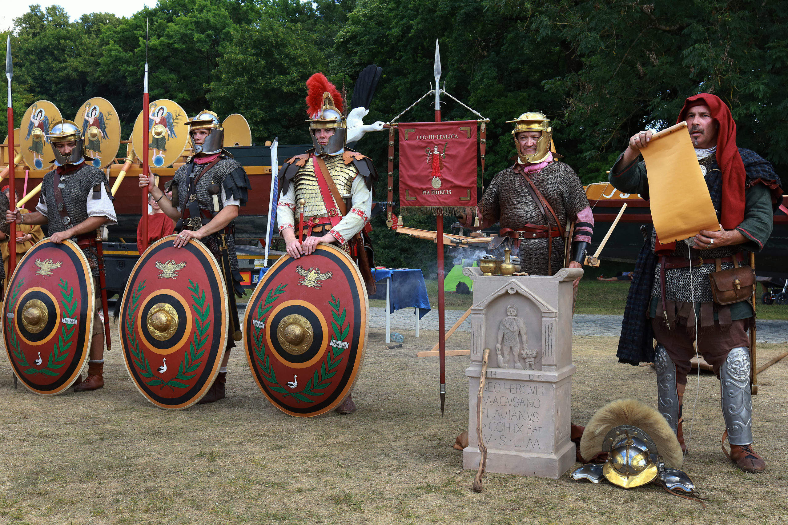 Der Zenturio hält eine Papyrusrolle vor sich. Seinen Helm hat er abgelegt, den dunkelroten Mantel, das paludamentum, ein Stück über den Kopf gezogen. Die Männer der Legio III Italica und der Cohors IX Batavorum haben links und rechts von ihm Aufstellung genommen. Auf dem steinernen Altar verbrennt ein kleines Opfer aus Weihrauch. Feine Rauchwolken steigen sich kräuselnd in die Höhe. Wie einst die Römer, ruft der Zenturio die Götter an, den Schiffen und ihren Besatzungen auf ihrer Fahrt beizustehen und ihnen eine sichere Reise zu gewähren.