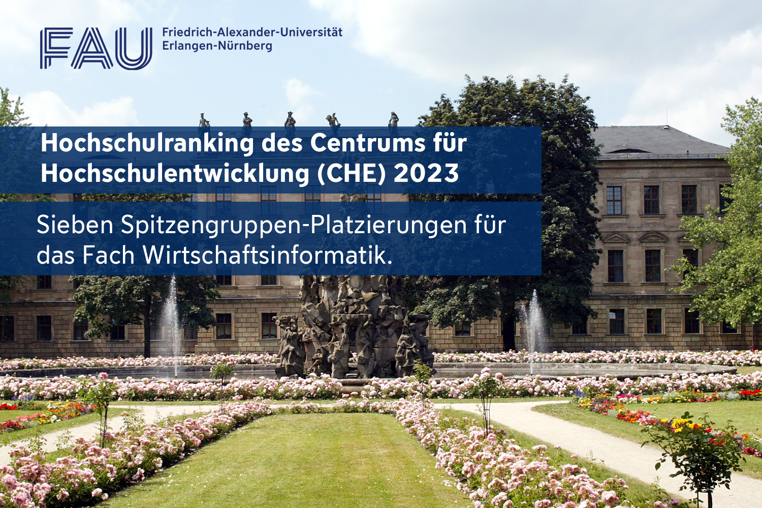 Es ist wieder soweit: Das Hochschulranking des Centrums für Hochschulentwicklung (CHE) wurde ausgewertet und auch in diesem Jahr ist die FAU ganz vorne mit dabei. Bewertet wurden die Fächer BWL, VWL, Jura, Wirtschaftsinformatik, Wirtschaftsingenieurwesen und Wirtschaftswissenschaften. Am erfolgreichsten abgeschlossen hat die Wirtschaftsinformatik mit sieben Spitzengruppen-Platzierungen: Betreuung durch Lehrende, Lehrangebot, Einführung in wissenschaftliches Arbeiten, Bibliotheksausstattung, IT-Infrastruktur, Unterstützung am Studienanfang und Promotionen pro Professor/-in.