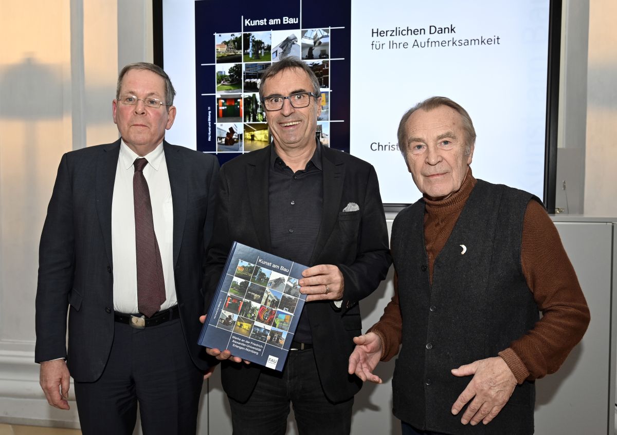 „Während Bauprozesse, insbesondere bei großen Vorhaben, oft in einem längeren Zeitrahmen stehen, markieren Kunst-am-Bau-Objekte zeitgenössischer Künstler und Künstlerinnen neben der bau- und architekturhistorischen Bedeutung von Einzelgebäuden ein Spektrum der Kunstgeschichte“, fasst Autor Christof Präg in seinem Vorwort zusammen. Der ehemalige Leiter des Bereichs Hochbau am Staatlichen Bauamt Bayreuth sowie damalige Vertreter des Amtsleiters am Universitätsbauamt Erlangen hat über Jahrzehnte solche Projekte begleitet. Dabei hat Präg Ausschreibungen, Wettbewerbe und Jurysitzungen ebenso dokumentiert wie die Verhandlungen zwischen Architektinnen und Architekten einerseits, Künstlerinnen und Künstlern andererseits. Seine Dokumentation dieser Arbeit ist die Grundlage der jetzt erschienen Übersicht, die aus Mitteln der FAU und des Universitätsbundes Erlangen-Nürnberg finanziert wurde. Seine Hoffnung dabei: „Damit möge sich auch der Blick schärfen, um diese einzigartigen Kunstwerke zu würdigen, manche aus ihrem Dornröschenschlaf zu erwecken, vernachlässigte oder beschädigte Objekte wieder ins Bewusstsein zurückzuholen.“