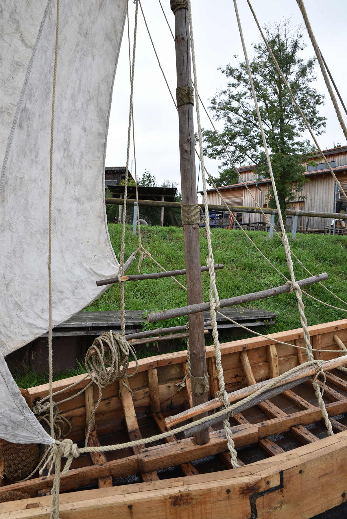 Original, die Zwammerdam II, ist mit 22,7 Metern zu groß für unsere Werft“, sagt Prof. Dreyer, „deshalb haben wir es in kleinerem Maßstab nachgebaut. Das ist jedoch kein Problem, denn diesen Bootstyp gab es in allen möglichen Größen.“ Um nämlich die Rund 1000 in der Altmühlregion stationierten Legionäre effektiv zu versorgen und Tonnen an Getreide und anderer Güter heranzuschaffen und zu verteilen, waren Boote wie die Alchmona rediviva viel besser geeignet, als Transportkarren auf Straßen. „Immerhin kann der FAU-Nachbau etwa sieben Tonnen Last aufnehmen“, betont Prof. Dreyer. Da aber Flüsse in der Antike stärker mäandrierten als heute und die Ufer viel stärker bewachsen waren, mussten die Boote, wenn sie nicht getreidelt werden konnten, also vom Ufer aus den Fluss entlang gezogen, gesegelt oder gestakt werden. „Deshalb durften die Boote keinen allzu großen Tiefgang haben und nicht allzu lang sein“, erklärt Dreyer. „Eine erste Probewasserung zeigte, dass die Alchmona rediviva einen Tiefgang von lediglich zehn bis 15 Zentimetern hat. Und mit etwa elf Metern Länge, wäre sie perfekt für den Transport auf der flachen und nach ihrer Renaturierung wieder mäandrierenden Altmühl geeignet.“ Wie gut die Fahreigenschaften solcher Transportboote waren, möchten Dreyer und sein Team nun in nächster Zeit untersuchen.