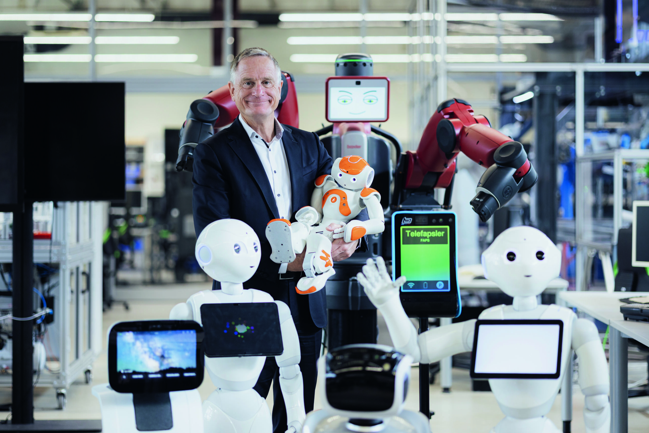 Unter Frankes Leitung wuchs der Lehrstuhl auf knapp 100 Mitarbeitende. Der 61-Jährige möchte die Forschenden nicht nur anleiten, sondern sie inspirieren. Vor allem möchte er „junge Ingenieurinnen und Ingenieure animieren, tolle Technologien in eigenen Start-ups auf den Markt zu bringen“. Erklärtes Ziel des Ingenieurs ist, disruptive Technologien zu erforschen. Dazu gehören unter anderem soziale Roboter. Ihre Entwicklung soll im Forschungsverbund „FORSocialRobots“, dessen Sprecher und Koordinator er ist, vorangetrieben werden. An dem bis 2027 laufenden Projekt sind Forschungseinrichtungen, Unternehmen und Anwender beteiligt. „Mensch und Roboter sollen gemeinsam in flexiblen Teams zusammenarbeiten. Dabei sollen in wissenschaftlichen Teilprojekten neue Roboterapplikationen erforscht und entwickelt werden“, schildert Jörg Franke.