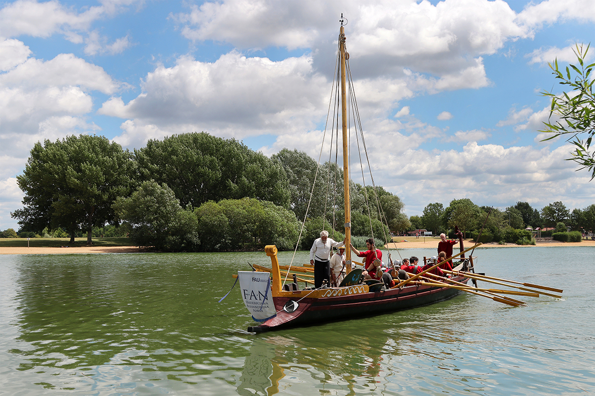 „Mittlerweile füllen die bei Bau und Tests gewonnenen Erkenntnisse etliche Qualifikations- und Masterarbeiten sowie eine Vielzahl weiterer Publikationen“, sagt der Althistoriker. Für dieZukunft wünscht er sich einen dualen Studiengang, bei dem Studierende nicht nur der Alten Geschichte gleichzeitig einen handwerklichen Abschluss machen. Boris Dreyer scheut zudem nicht die öffentliche und mediale Präsenz. Wettfahrten der Boote, Messeauftritte sowie Römer und Mitruderevents erregen öffentliches Interesse, seine Projekte werden in bekannten populärwissenschaftlichen Magazinen und internationalen Dokumentationen gezeigt, und er selbst ist ein gefragter Experte für römische Technologie. „Für meine Lehrer waren Öffentlichkeitsarbeit und seriöse Wissenschaft noch unvereinbar“, sagt er. Das hat sich geändert: Dreyer selbst sieht Öffentlichkeitsarbeit als integrative Aufgabe, die letztlich auch Verständnis und Unterstützung für diese Art der Forschung fördert.