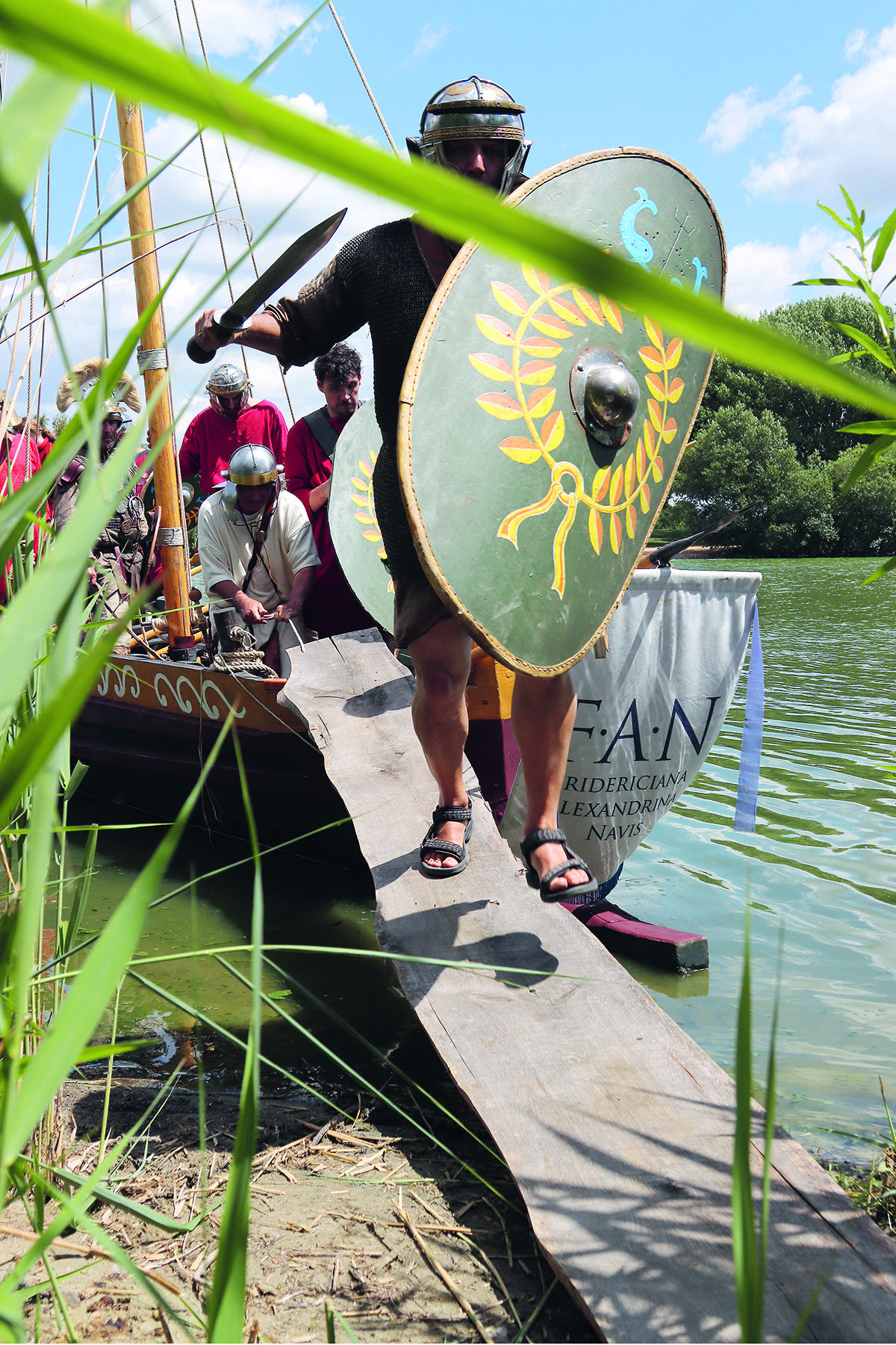 Ob Legionäre oder Händler, Römer oder Kelten – Handel und Wandel in der Antike waren abhängig von der Funktionsfähigkeit handwerklich gefertigter Geräte, Fahrzeuge oder Waffen. „Wenn wir die Funktions- und Leistungsfähigkeit antiker Handwerksprodukte genau überprüfen wollen, geht Probieren über Studieren“, sagt Boris Dreyer. Seit 2017 hat der Professor für Alte Geschichte drei römische Boote nachgebaut: die „Fridericiana Alexandrina Navis“, ein römisches Patrouillenboot aus dem ersten Jahrhundert nach Christus, die „Danuvina Alacris“, ein Boot aus dem vierten Jahrhundert, sowie ein römisches Transportboot, die „Alchmona rediviva“. Zudem haben er und sein Team bisher zwei Geschütze aus unterschiedlichen Zeitstellungen und ein Katapult aus dem vierten Jahrhundert, einen Ofen, 22 Schilde sowie einen keltischen Streitwagen und einen römischen Reisewagen rekonstruiert.