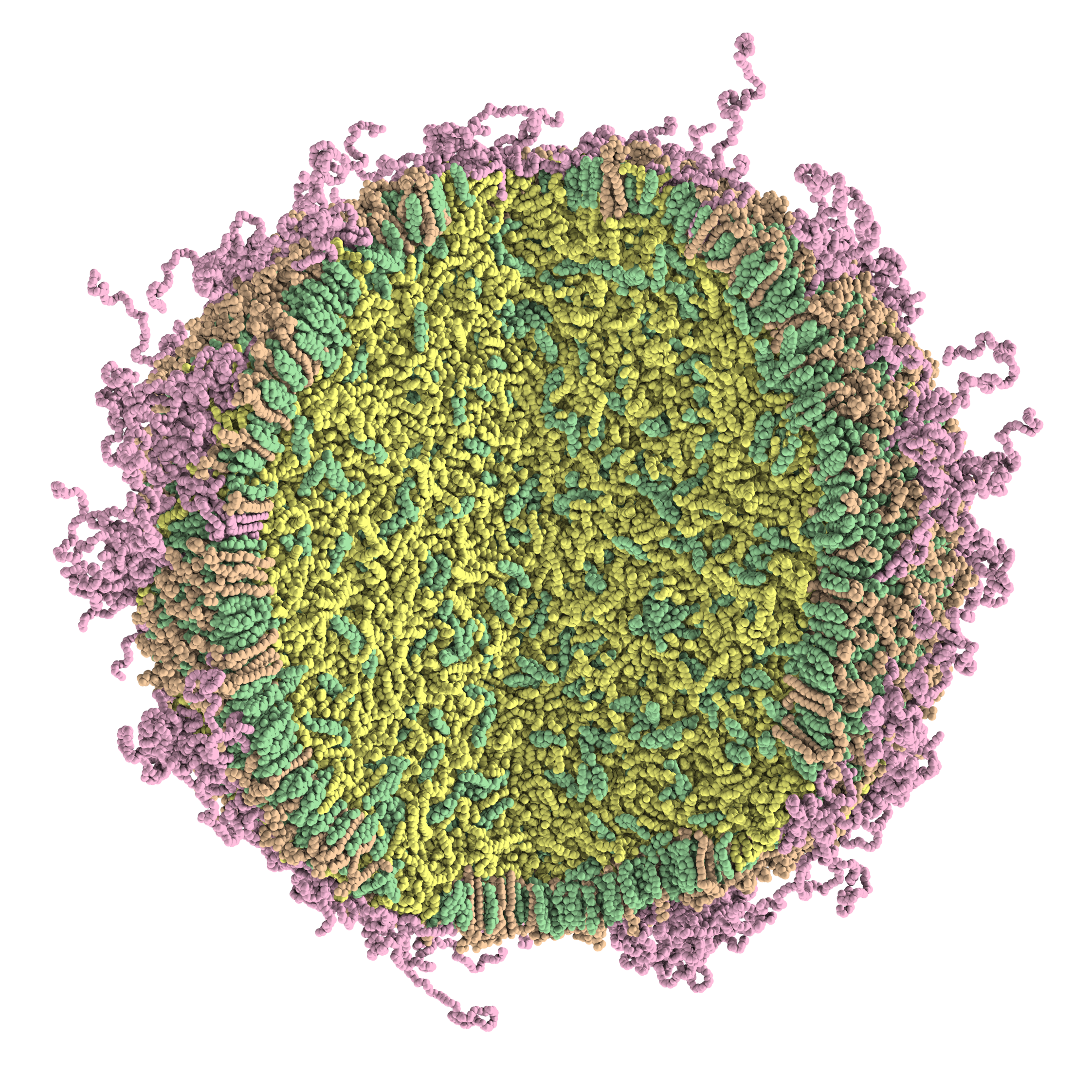 Der Doktorand Marius Trollmann und Böckmann haben diesen Prozess an den Supercomputern des Zentrums für Nationales Hochleistungsrechnen Erlangen (NHR@FAU) simuliert. So konnten sie in einem Film sichtbar machen, wie sich die Hülle des Fetttröpfchens bei Änderung des Umgebungs-pH-Werts nach und nach umorganisiert. „Wir konnten dabei auch zeigen, wie stark der pKa-Wert der Aminolipide von ihrer molekularen Nachbarschaft abhängt“, erläutert Böckmann: „Je nachdem, welche anderen Verbindungen in ihrer Umgebung vorhanden sind, kann er sich um bis zu vier Einheiten verschieben.“ So nehmen Aminolipide in wässriger Umgebung bei einem pH-Wert von neun Wasserstoff-Ionen auf und werden dadurch positiv geladen. Erst durch die Lipidumgebung des Nanopartikels verschiebt sich dieser Umschalt-Punkt auf einen pH-Wert von fünf bis sechs – also den Wert, der auch in Endosomen herrscht.