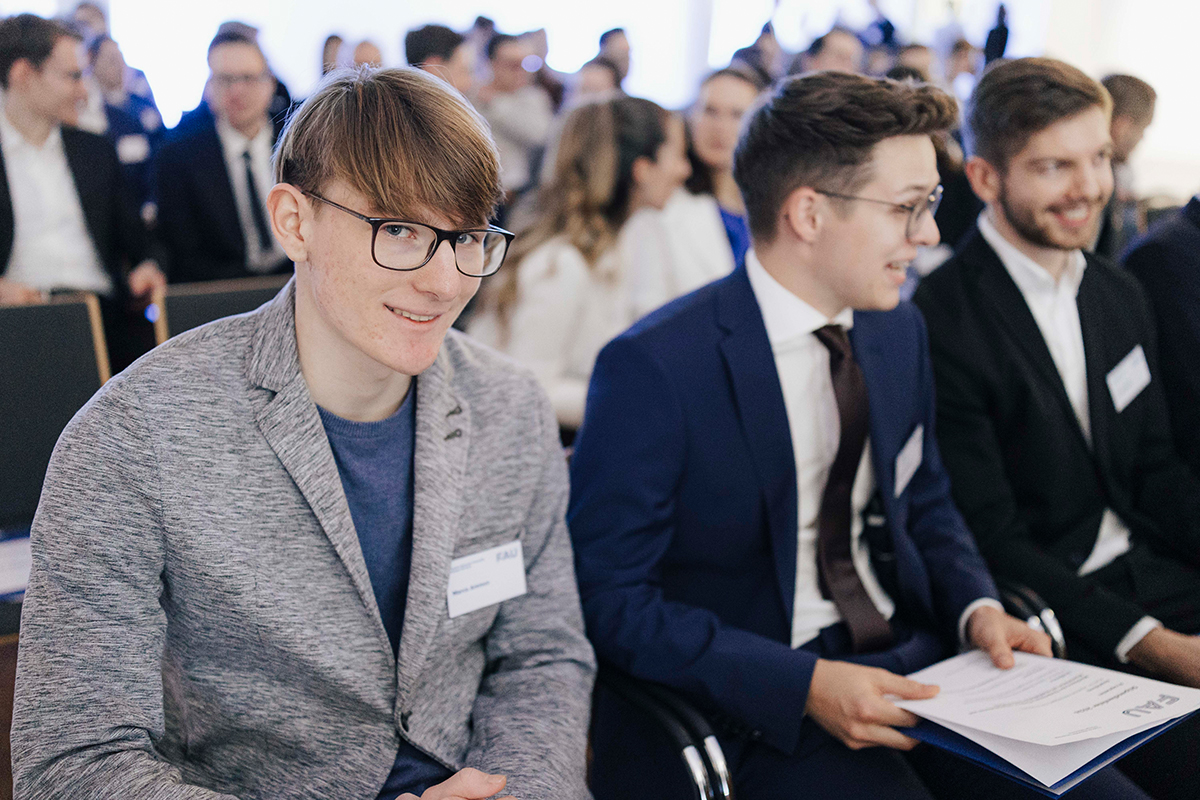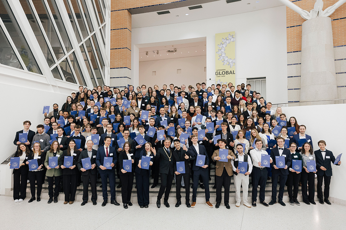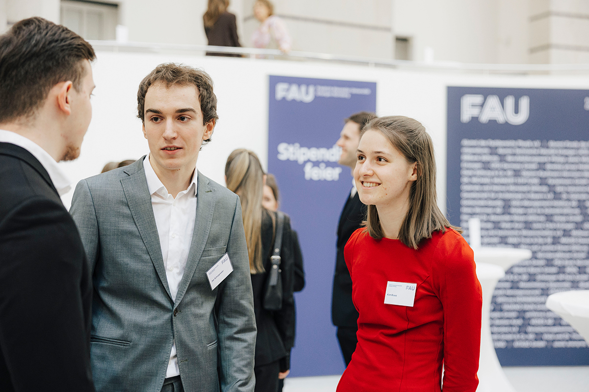 Money, Money, Money, must be funny… Studium und Geld, letzteres ist häufig eher rar, aber gibt Abhilfe. Eine Möglichkeit, um sich das Studium besser finanzieren zu können, ist das Deutschlandstipendium. Die FAU lädt jedes Jahr Stipendiatinnen und Stipendiaten sowie Förderinnen und Förderer zur festlichen Stipendienfeier der FAU in das Germanische Nationalmuseum in Nürnberg ein. 2026 fand die Feier am 9. Februar wieder im Aufseß-Saal statt. Im Rahmen der Feier wurden die begabten Nachwuchstalente, die sich neben ihrem Studium auch häufig gesellschaftlich engagieren, für ihre Leistungen ausgezeichnet. Im Anschluss hatten dann die Förderinnen und Förderer die Gelegenheit ihre Stipendiatinnen und Stipendiaten persönlich kennenzulernen.