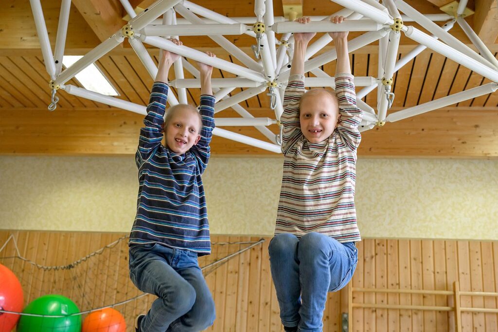 „Ich habe mich damals hin- und hergerissen gefühlt, weil wir keine Referenzen hatten. Aber wir hatten Vertrauen in Prof. Schneider und wollten diese Pionierarbeit leisten. Gemeinsam haben wir die richtige Entscheidung getroffen“, sagt der Vater der Zwillinge, Tobias T., rückblickend. „Für mich war es klar, dass ich eine Behandlung im Mutterleib machen will, wenn ich erneut ein Kind mit Ektodermaler Dysplasie bekommen sollte“, ergänzt seine Frau Corinna T. „Als uns im warmen Auto das erste Mal auffiel, dass die Babyschalen voller Schweiß waren, war das wirklich der Wahnsinn“, erinnert sich die Mutter der Zwillinge. So etwas kannten die Eltern von ihrem ersten Sohn Joshua nicht. Der Erlanger Heilversuch hatte funktioniert – Linus und Maarten schwitzten und hatten damit einen entscheidenden Vorteil gegenüber ihrem großen Bruder, der mit Ektodermaler Dysplasie zur Welt kam und sein Leben lang ohne Schweißdrüsen zurechtkommen muss. „Die Zwillinge können ihre Körpertemperatur völlig normal regulieren – und toll ist auch, dass die beiden mehr Zähne haben als Joshua“, erklärt Corinna T. „Heute in die Klinik zu kommen, ist wie nach Hause kommen. Erlangen ist ein Teil unseres Lebens geworden.“ Tobias T. ergänzt: „Jetzt sind wir nach zehn Jahren vorerst das letzte Mal hier und es schließt sich damit ein Kapitel unseres Lebens.“