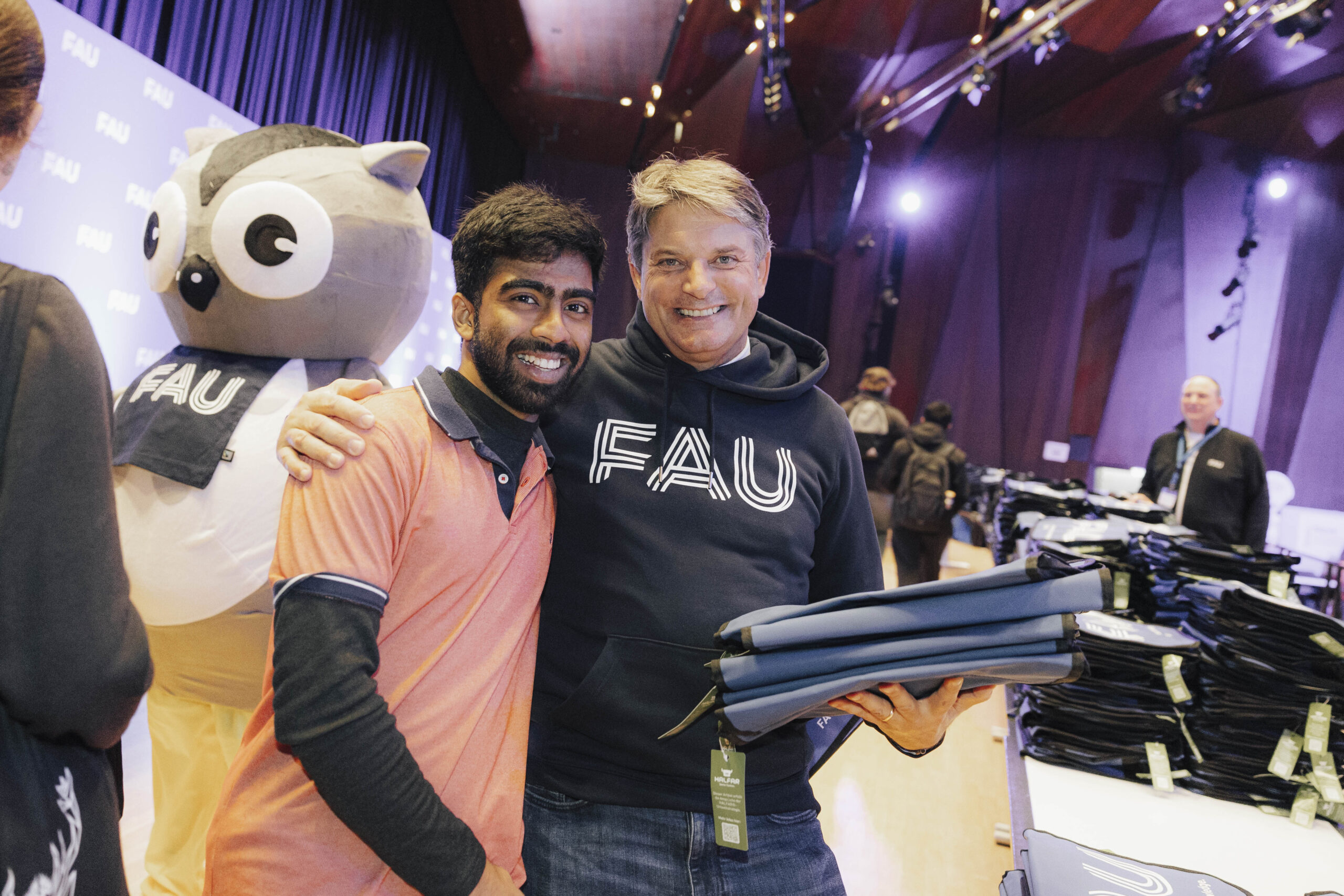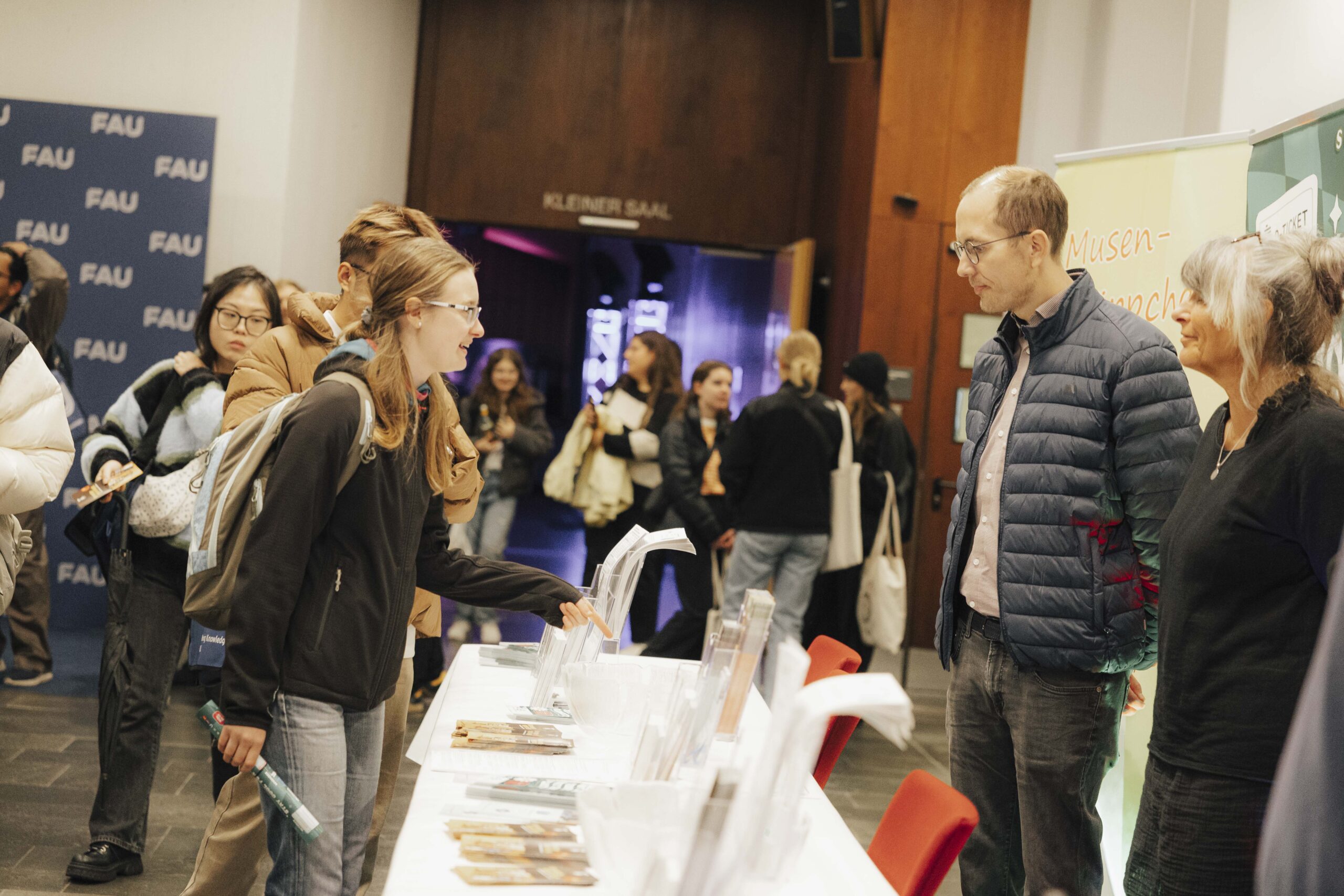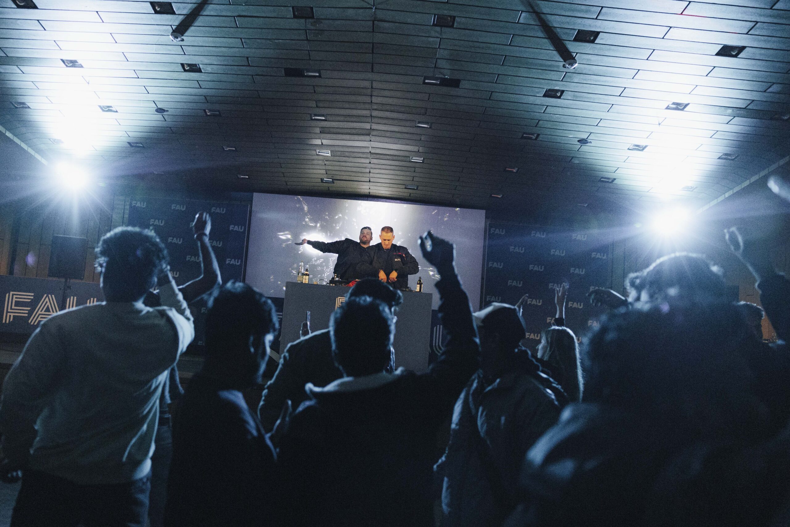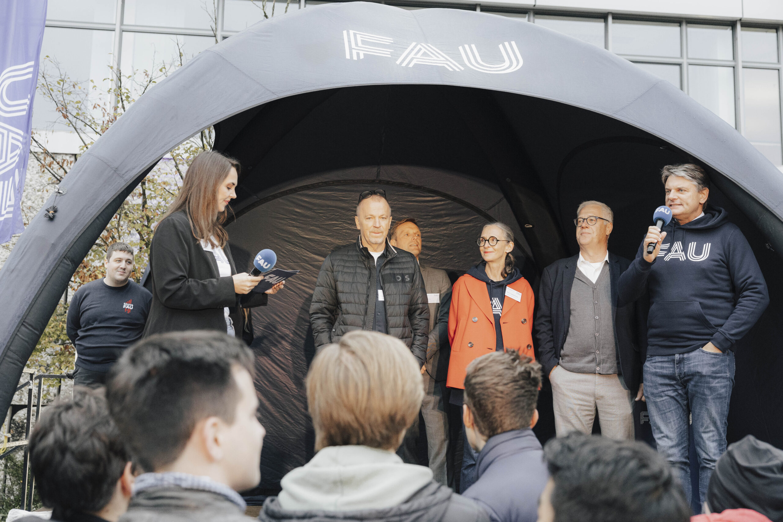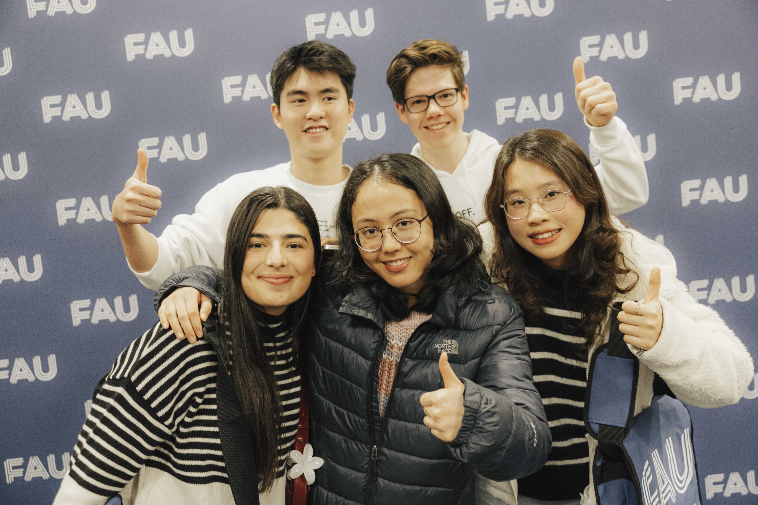 Jedes Jahr heißt die FAU ihre neuen Studierenden mit der FAU Erstsemesterbegrüßung willkommen. Hier erwartet alle die Begrüßung unseres Präsidenten und der gesamten Universitätsleitung, ein cooles DJ-Set und seit 2025 die neuen FAU-Rucksäcke*. Des Weiteren stehen alle wichtigen Ansprechpartnerinnen und Ansprechpartnern für den gelungenen Start ins Studium an der FAU für Fragen zur Verfügung.