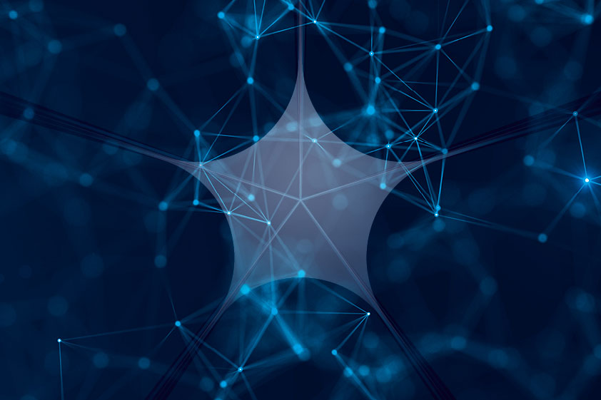 Grafische Darstellung: Auf blauem Hintergrund viele hellblaue Punkte, die miteinander verknüpft sind.