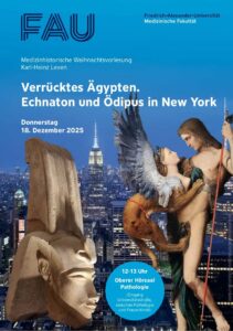 Die Vorlesung hält Prof. Dr. Karl-Heinz Leven. Sie trägt den Titel: Verrücktes Ägypten. Echnaton und Ödipus in New York.